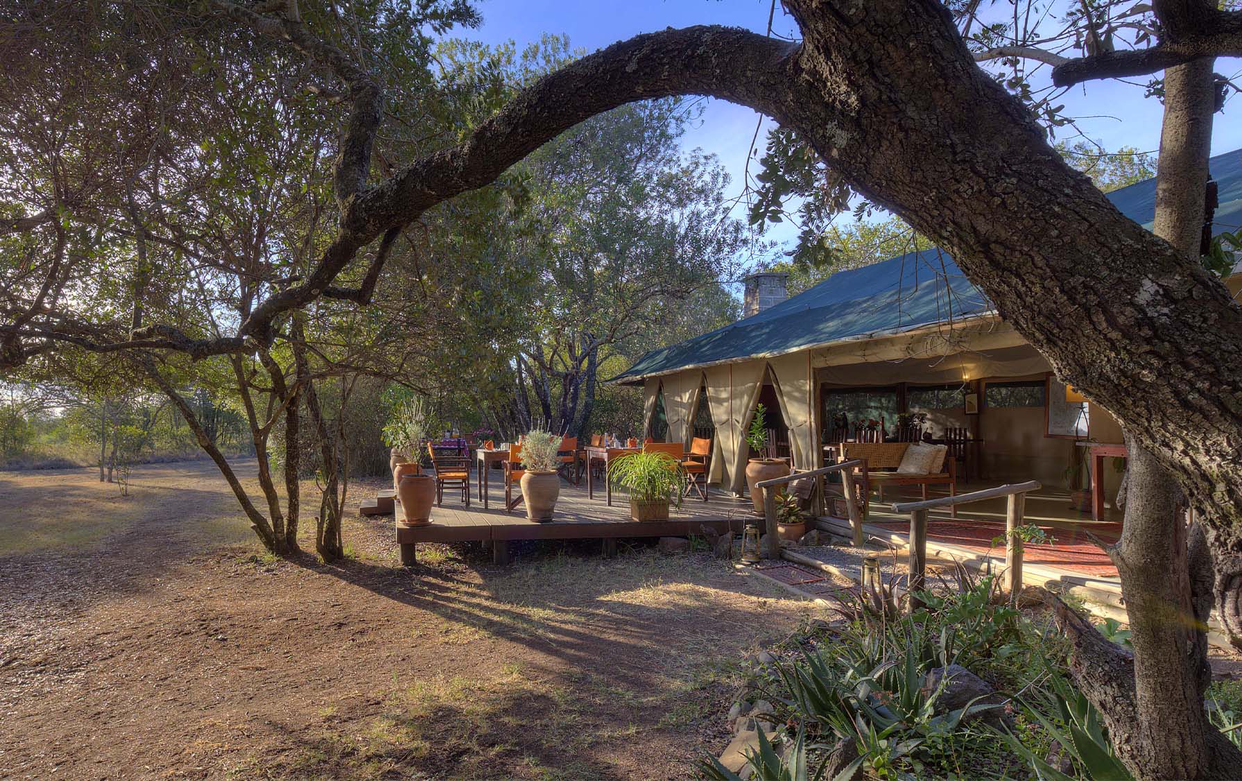 The spacious well-furnished lounge and dining tent have two roaring fires for the cooler evenings.
